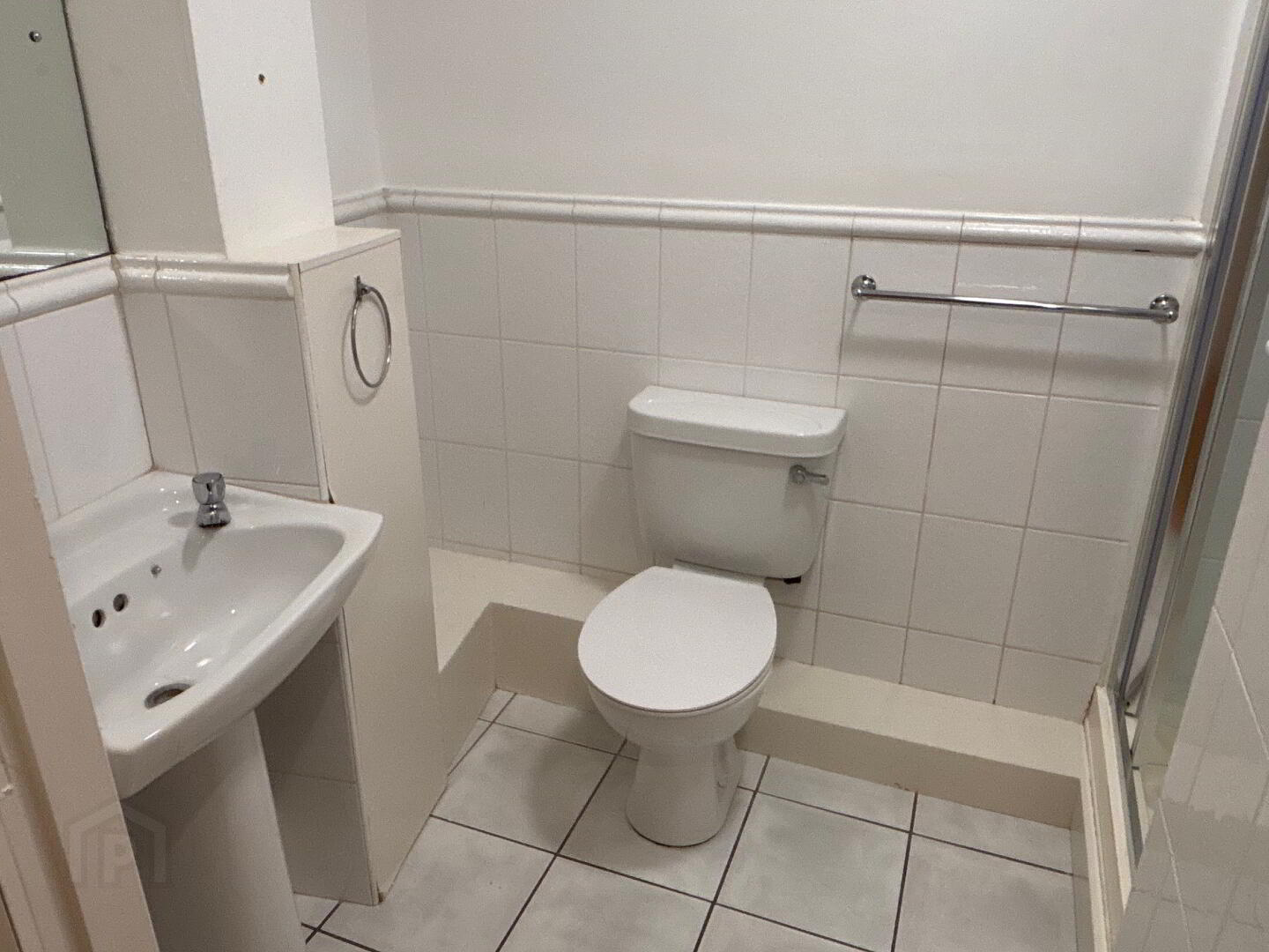 Ceramic Tiled Floor, W.C., W.H.B., Shower Cubicle with Triton Electric Shower, Part Tiled.