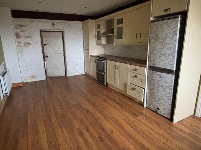 Wood Floor, Wall & Floor Units, Electric Hob, Extractor, Fan, Plumbed for Dishwasher, Power Points.